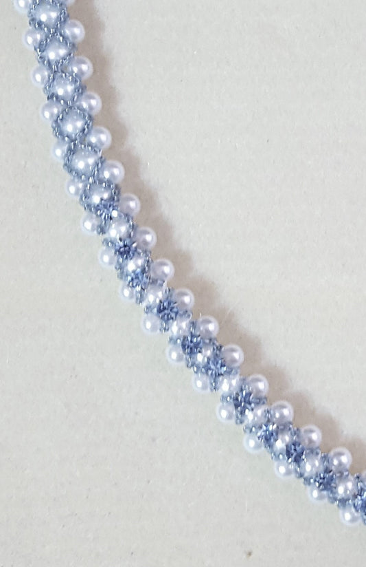 Exquisite Pearl and Blue Crystal Beaded Necklace