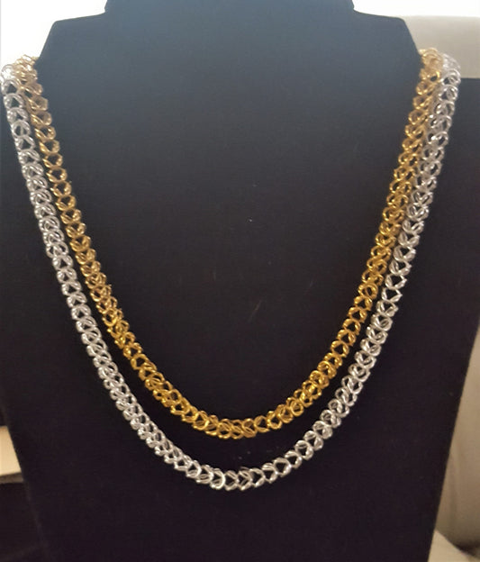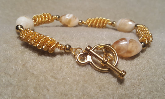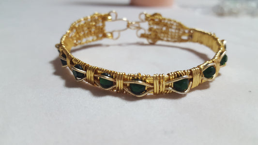 Chainmaille Beaded Bracelets - 1. Gold Plated with gold/black beads 9"